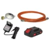 Lieferumfang: Gasheizgebläse GH 18-0, Akkupack 2 Ah, Ladegerät 0,5 A, Gasschlauch (1,5 m) und Druckminderer (700 mbar)